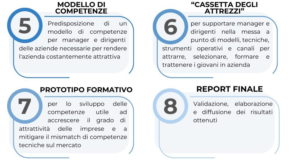- identificare un modello di attrattività che semplifichi l’inserimento delle nuove generazioni e che sia coerente con le priorità di sviluppo delle organizzazioni manifatturiere;