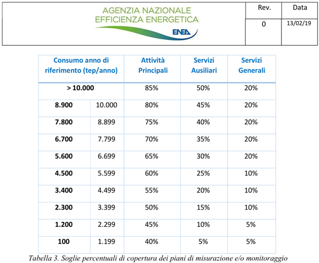 A riguardo ricordiamo che ENEA ha stabilito dei parametri minimi in merito alle soglie percentuali di copertura dei consumi da misurare suddivisi per tre categorie: